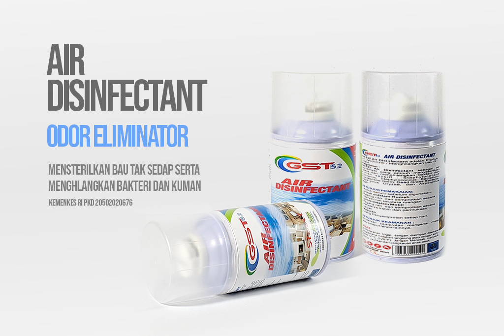 Air disinfectant merupakan produk air deodorizer untuk menghilangkan bau tak sedap serta menghilangkan bakteri dan kuman seperti : staphylococcus, epidermis, staphylococcys bacterium, flourescene germ, dead grass bacteria, aspergillus oryzae dan aspergillus niger.