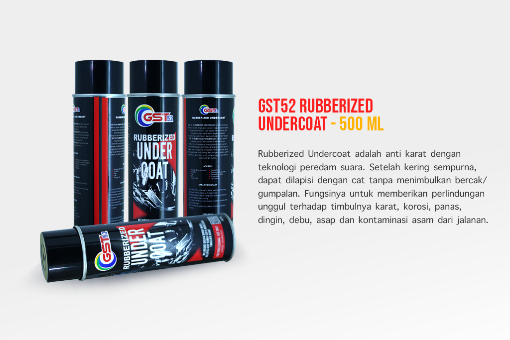 Rubberized Undercoat adalah anti karat dengan teknologi peredam suara. Setelah kering sempurna, dapat dilapisi dengan cat tanpa menimbulkan bercak/ gumpalan. Fungsinya untuk memberikan perlindungan unggul terhadap timbulnya karat, korosi, panas, dingin, debu, asap dan kontaminasi asam dari jalanan.